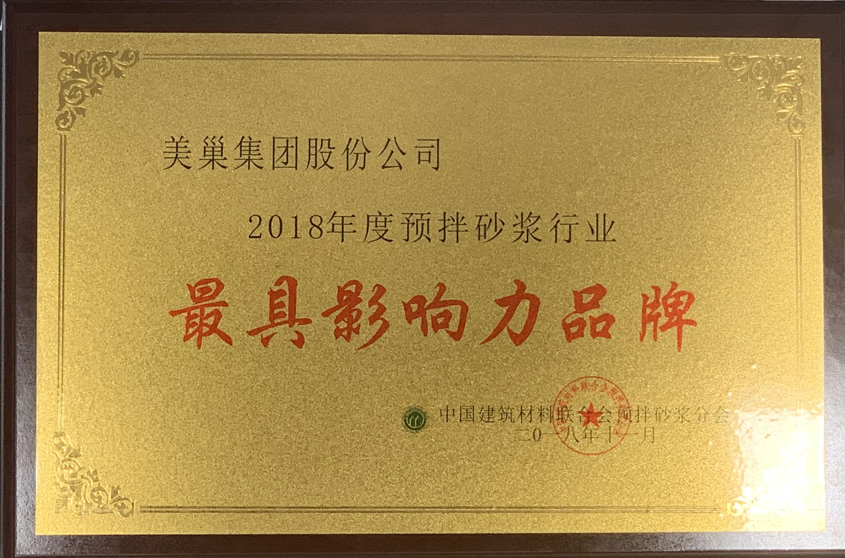 2018年度預(yù)拌砂漿行業(yè)最具影響力品牌
