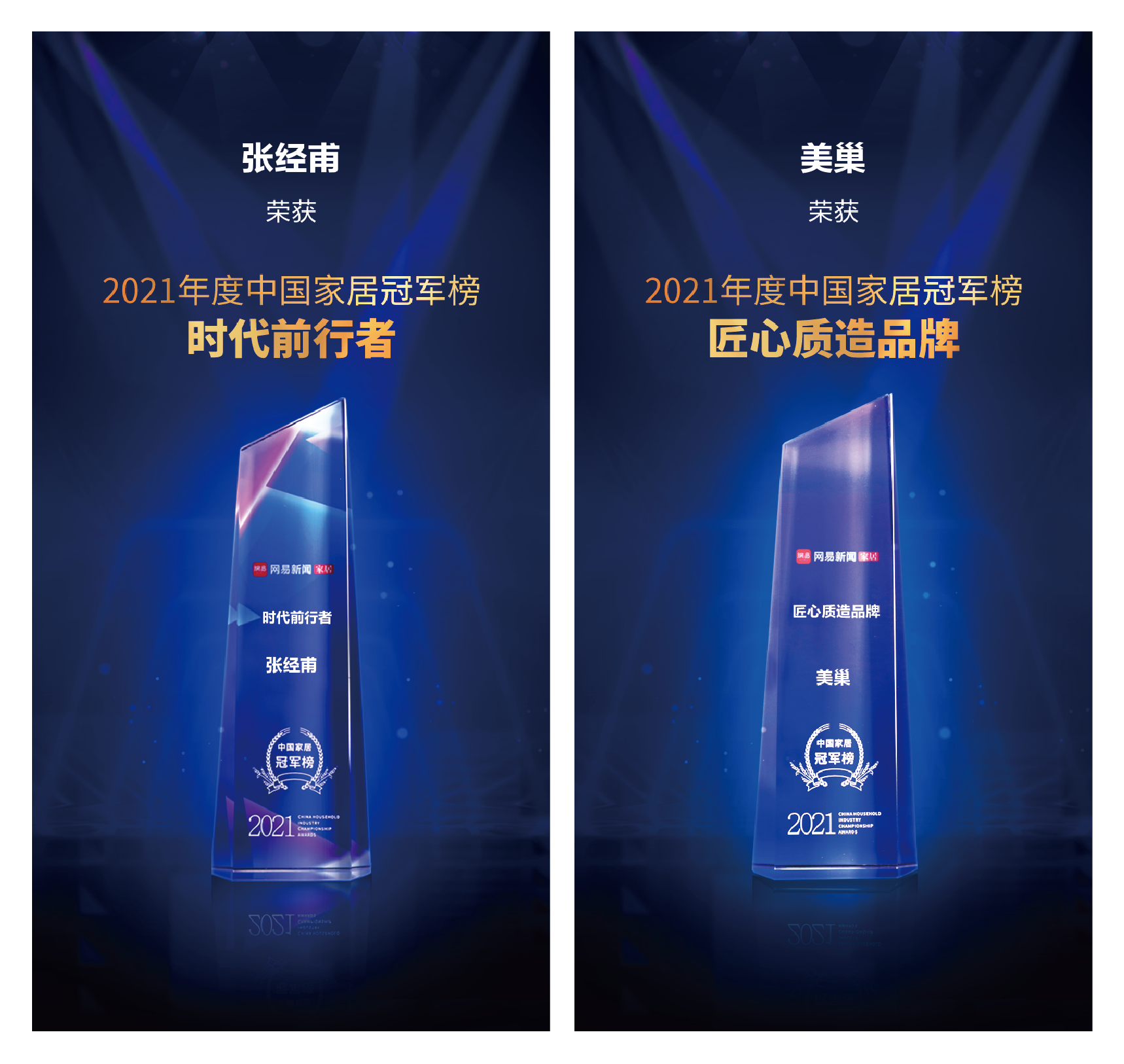 此次,美巢榮獲“2021年度中國家居冠軍榜——匠心質(zhì)造品牌”獎項,美巢集團董事長張經(jīng)甫先生榮獲“2021年度中國家居冠軍榜——時代前行者”稱號。