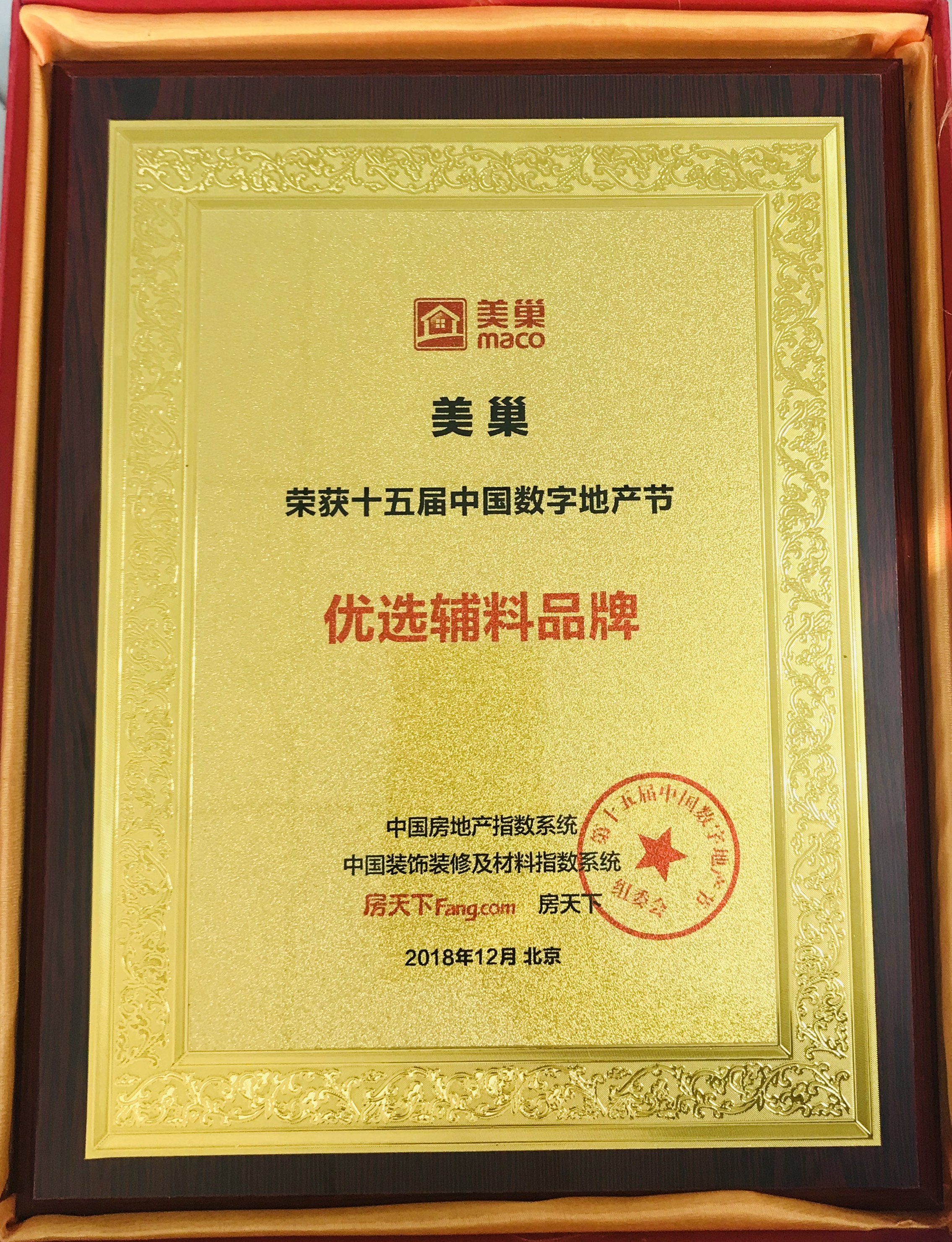 美巢獲中國數(shù)字地產(chǎn)節(jié)“優(yōu)選輔料品牌”獎(jiǎng)