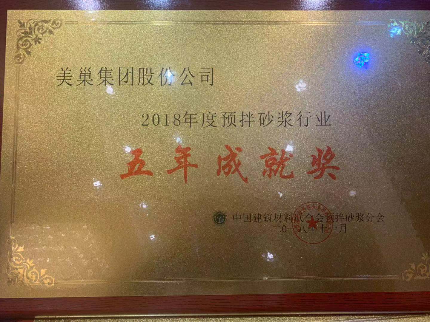 美巢集團榮獲2018年度預拌砂漿行業(yè)最具影響力品牌