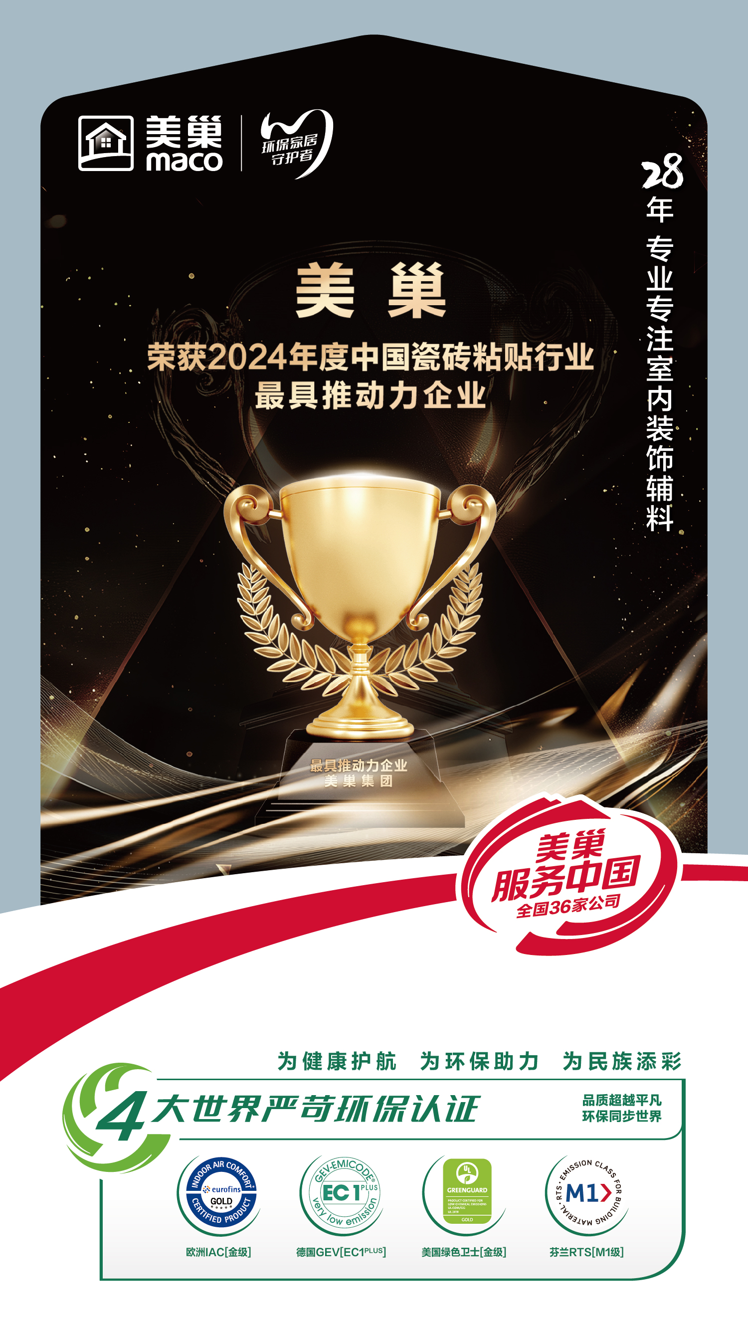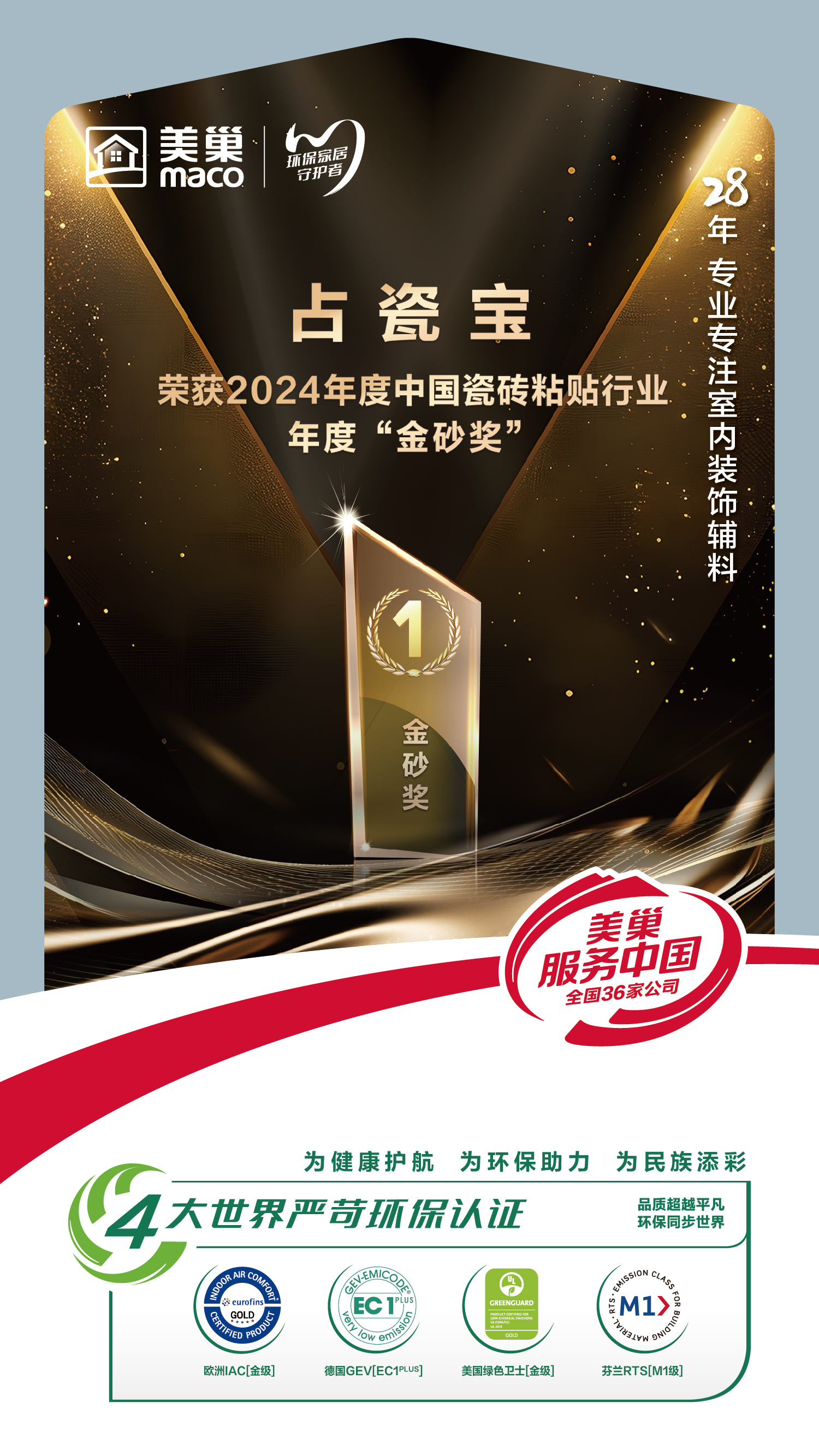 摘要:“卷出新高度 行業(yè)再升級(jí)”,日前,由中國(guó)陶瓷工業(yè)協(xié)會(huì)瓷磚粘貼技術(shù)專業(yè)委員會(huì)(TCT)主辦的“2024年度中國(guó)瓷磚鋪貼行業(yè)大會(huì)暨技術(shù)交流分享會(huì)”順利召開。為表彰行業(yè)杰出貢獻(xiàn),大會(huì)對(duì)一批優(yōu)秀企業(yè)及個(gè)人進(jìn)行了榮譽(yù)授予,美巢集團(tuán)股份公司(以下簡(jiǎn)稱“美巢”)憑借在瓷磚粘貼行業(yè)的貢獻(xiàn),被認(rèn)定為“2024年度中國(guó)瓷磚粘貼行業(yè)最具推動(dòng)力企業(yè)”,同時(shí)占瓷寶產(chǎn)品再度榮膺“2024年度中國(guó)瓷磚粘貼行業(yè)年度產(chǎn)品‘金砂獎(jiǎng)’”,這已是占瓷寶連續(xù)多年獲得此項(xiàng)殊榮。
