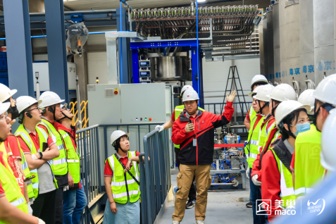 自動化部機(jī)械管理經(jīng)理王飛通過“景”在華彩、“精”在華彩、“進(jìn)”在華彩、“僅”在華彩四個(gè)篇章,帶領(lǐng)參會人員領(lǐng)略了過美巢的“工業(yè)之美”后,無不贊嘆設(shè)備的先進(jìn)性、設(shè)計(jì)規(guī)劃的復(fù)雜性,盡管已經(jīng)有了心理預(yù)期,但在踏入廠區(qū)的那一刻,依然無法抑制住內(nèi)心的激動,再一次被這一作品深深地震撼。