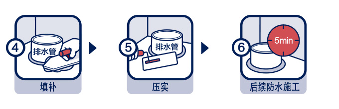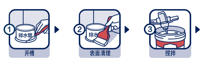 基層修補:裂縫、凹凸不平處和孔洞墻面需用墻諾快硬抹灰砂漿進行填充找平,地面需用坊水固堵漏靈進行修補找平,陰陽角用坊水固堵漏靈抹成圓弧角或鈍角,防止產生裂縫; 基層清理:基層應堅實、平整、無灰渣、無浮灰、無明水,地漏和管道根部除去銹跡和灰渣; 基層潤濕:需使用刷子或滾筒用水進行預潤濕。若使用墻錮混凝土界面劑或地錮地面界面劑進行潤濕處理,可增大涂刷面積,提高防水涂層粘結力。 |
