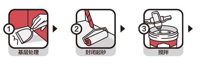 基層處理: | 基層須堅(jiān)實(shí)、干燥、無(wú)浮灰與污物,并用地錮地面界面劑或墻錮混凝土界面劑進(jìn)行基層封閉,界面劑表干后方可進(jìn)行找平施工。 |