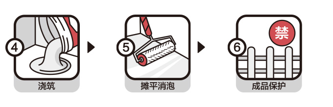 施工事項(xiàng): | 施工面積較大時(shí),應(yīng)設(shè)置分隔縫。澆筑后可用刮杠、消泡滾筒等工具輔助攤平。攪拌好的砂漿須在30分鐘內(nèi)用完。 |