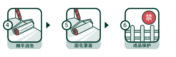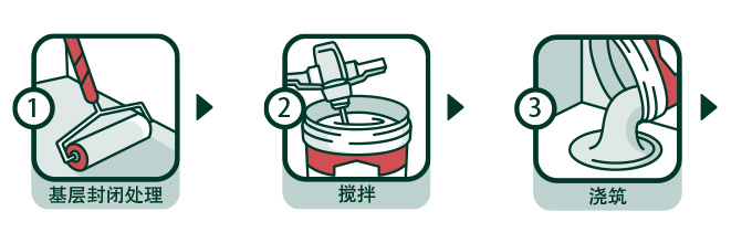 施工事項(xiàng): | 施工面積較大時(shí),應(yīng)設(shè)置分隔縫。澆筑厚度不得低于3mm,澆筑后用鋸齒抹刀或刮板等輔助攤平,并用消泡滾筒進(jìn)行輔助消泡。攪拌好的砂漿須在30分鐘內(nèi)用完。 |